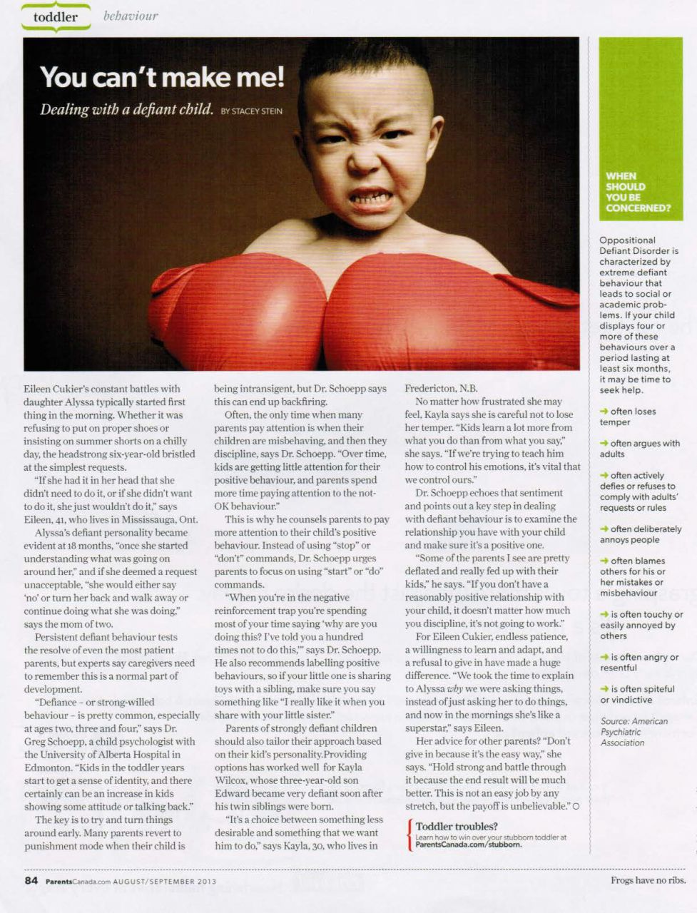 Home // Journalism // You can’t make me! You can’t make me! Parents Canada | August/September 2013 View PDF Source ← Globe and Mail, Four boomers on why they chose second careers as entrepreneurs Best Health, Beauty from the pantry →